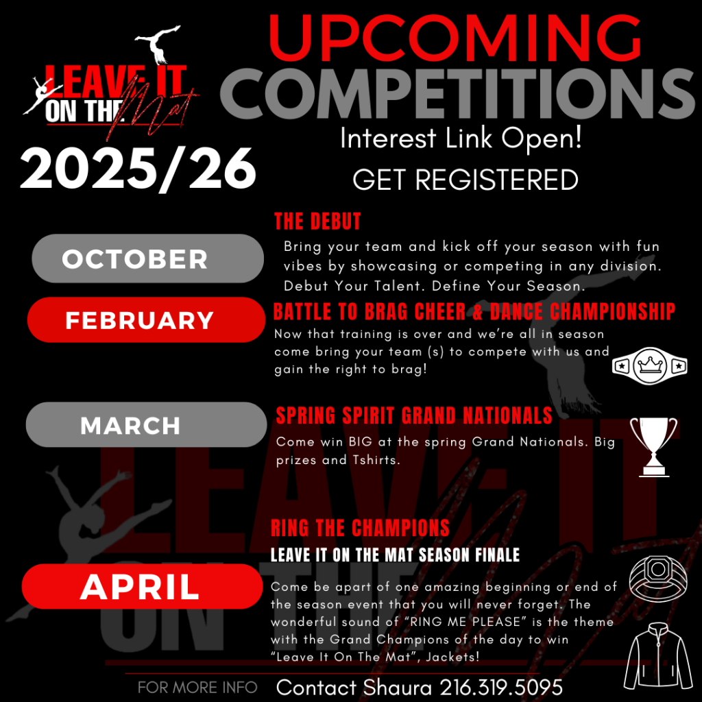 With a commitment to excellence and a passion for performance, we promise to make every competition a celebration of talent, teamwork, and triumph. Say goodbye to lackluster events and hello to excitement as we bring the energy and enthusiasm to each moment. Our competitions are not just about winning; they’re about creating memories that last a lifetime. Plus, with fantastic prizes awaiting the champions, there’s every reason to give it your all and aim for the top spot. So, gather your team/organization, lace up your shoes, and get ready to dazzle the crowd and viewers because with us, the Mat is set, and the spotlight is waiting for you!